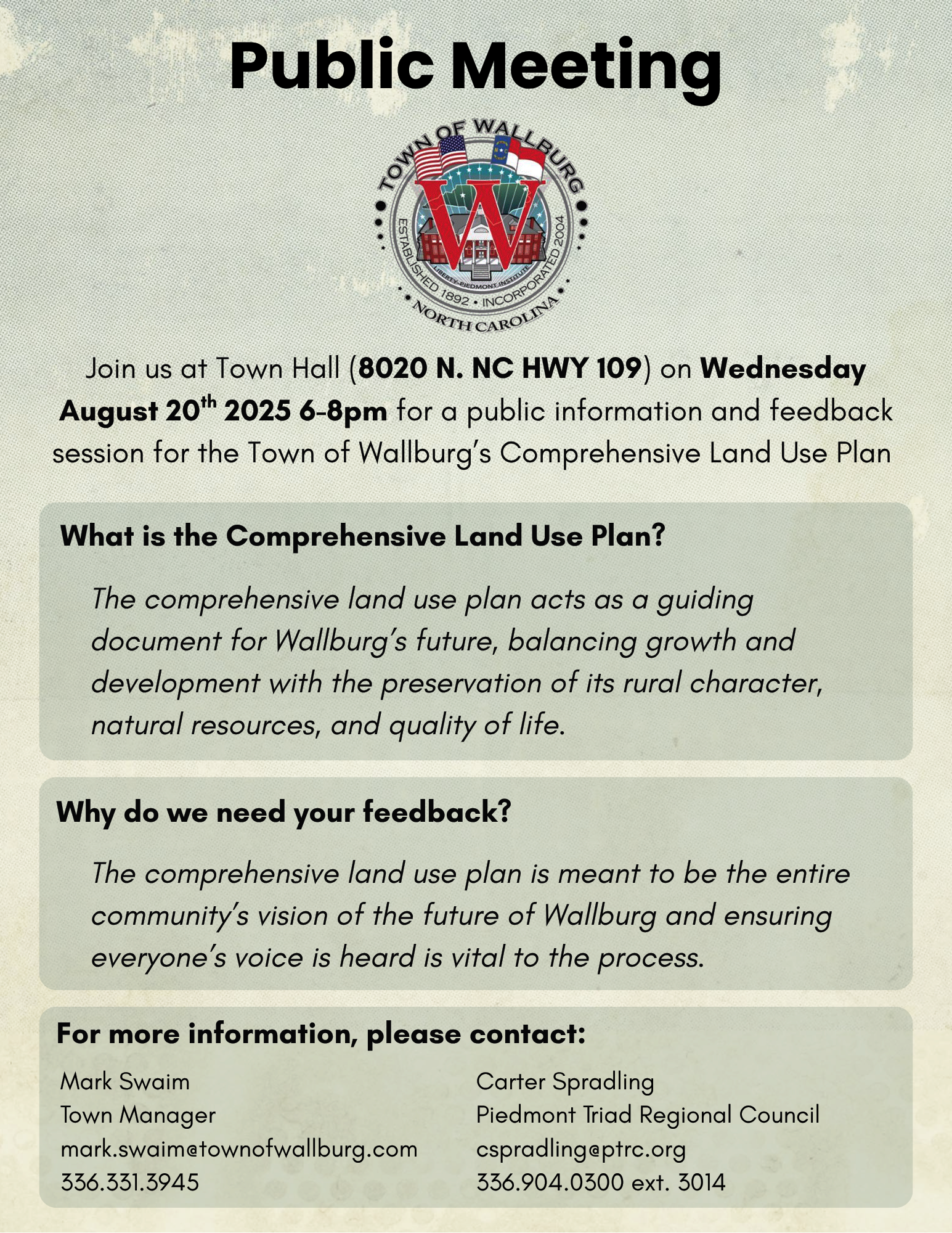 - 08-20-2025 – Public Meeting and Feedback Session on Comprehensive Land Use Plan