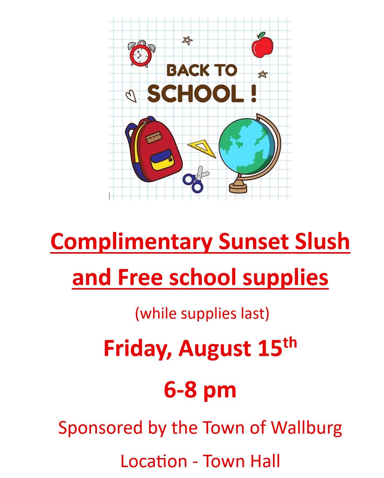 - 08-15-2025 – Sunset Slush and free School Supplies